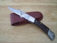Steel Lock Blade with Belt Clip .Very Thin Or Flat Knife With Wood Trimmed Handle.